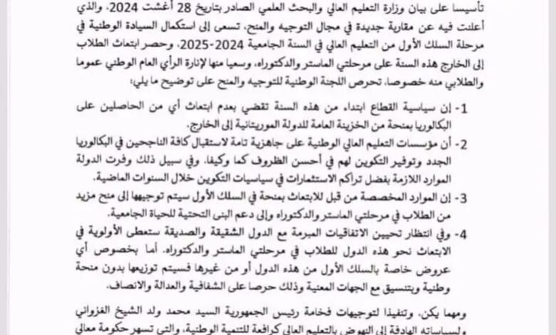 أعلنت وزارة التعليم العالي اليوم الاثنين أن “عروض الابتعاث التي تقدمها الدول الصديقة والشقيقة لطلاب السلك الأول ستُوزع بدون منحة…