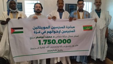 سلمت مبادرة المدرسين الموريتانيين المتبرعين لأخوانهم في غزة مبلغ مليون وسبعمائة وخمسين ألف أوقية قديمة لممثل حركة حماس في موريتانيا…